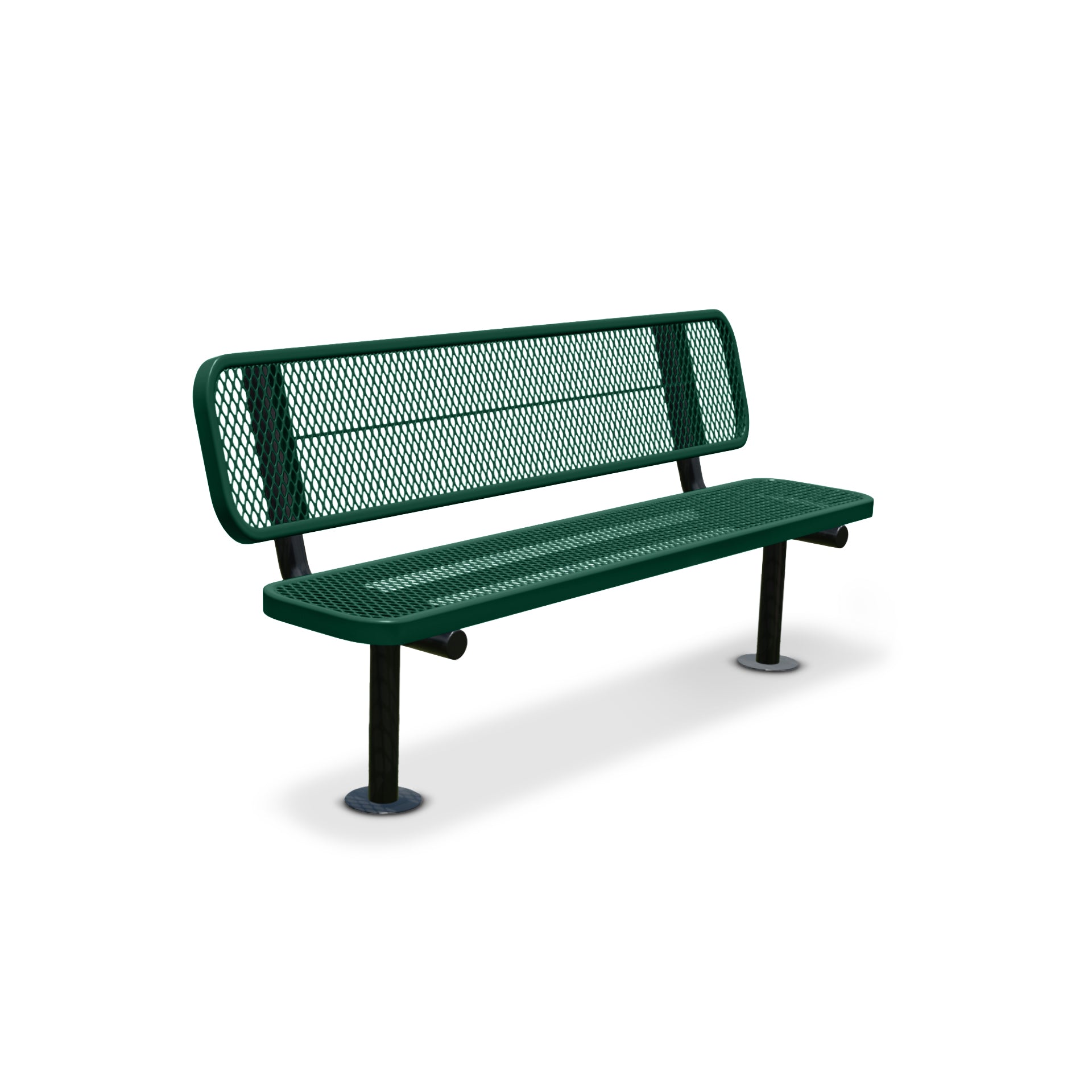 Designed for classic outdoor settings, our 6 Ft Surface Mount Heavy-Duty Expanded Metal Bench with Backrest in Green blends naturally into landscaped environments and traditional park spaces. The green powder-coated finish feels familiar and timeless, making it a dependable choice for parks, schools, and recreation areas. Proudly Built in the USA, this surface mount bench provides anchored seating built for everyday public use.